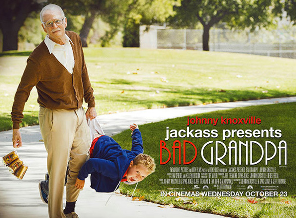 Jackass front man Johnny Knoxville resurrects OAP character Irving Zisman for his very own movie, Bad Grandpa. We first saw the 90-year-old’s high jinx back on MTV in 2001. He seems to be doing well and aging backwards as he’s now 86 years old in this – must be the fresh cheek of youth rubbing off on him from grandson Billy (Jackson Nicoll) who comes along for the ride. Fear not, this is Jackass with the crude knob turned down a touch but the odd toilet humour gag and latex prosthetics body parts are on show.